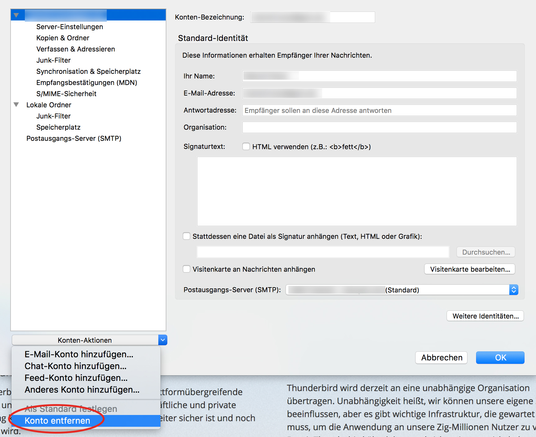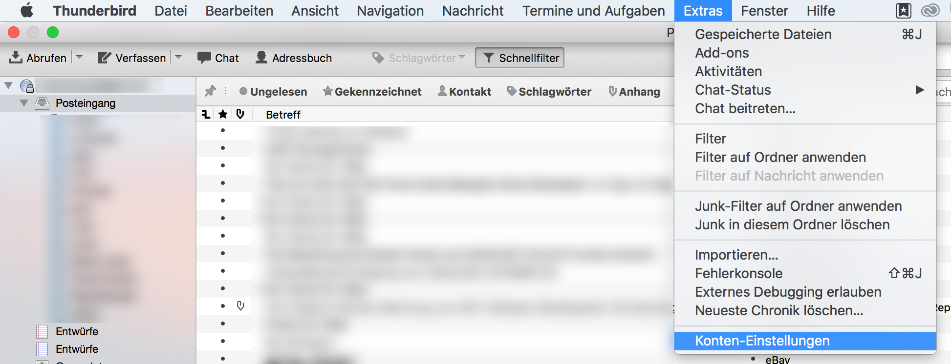Öffnen Sie zunächst Ihre Konten-Einstellungen über Extras -> Konten-Einstellungen