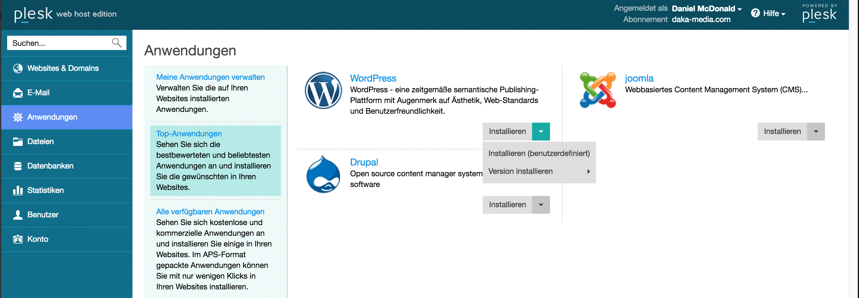Wenn Sie eine Website mithilfe eines Content-Management-Systems ("CMS") erstellen wollen, gehen Sie zum ReiterAnwendungen > Installieren.