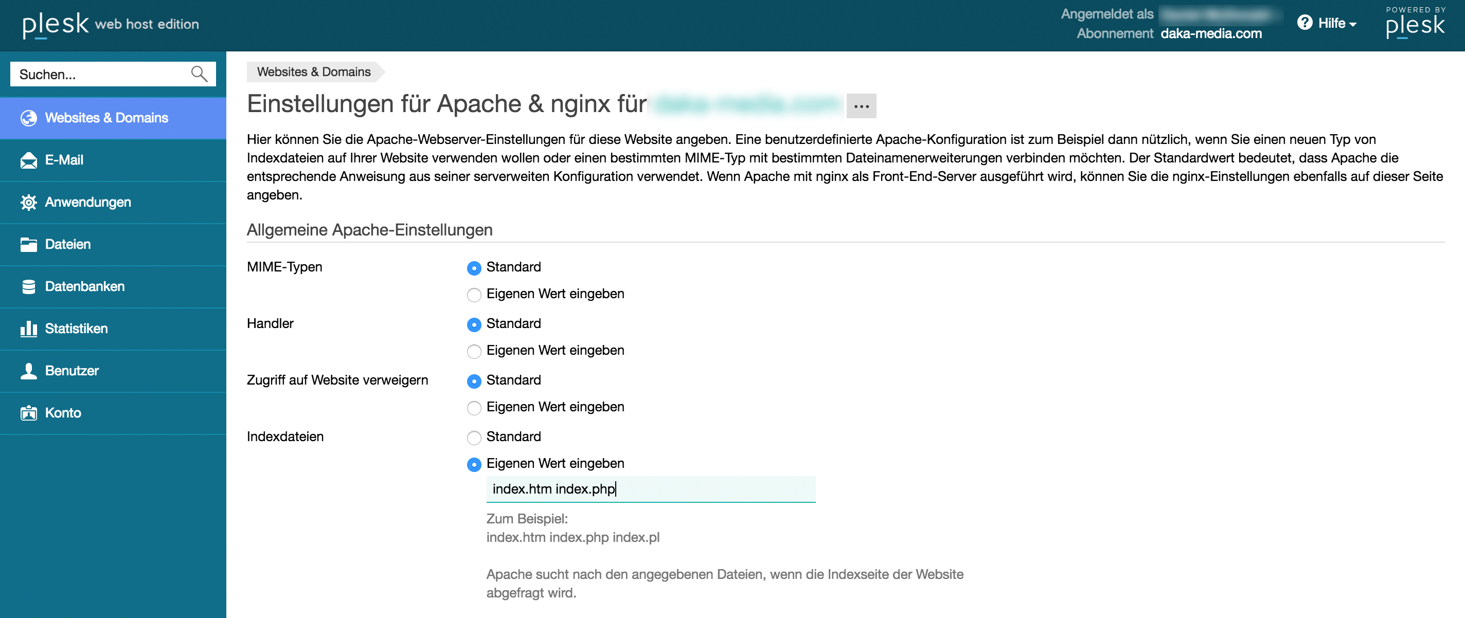 So ändern Sie die voreingestellte Indexseite in Plesk für Linux: